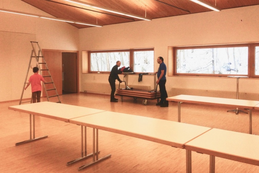 Mehrzwecksaal des Vereinshauses in Gamprin, gegenüber Gemeindehaus Gamprin (Adresse: Haldenstrasse, 9487Gamprin).Parkplätze befinden sich direkt vor dem Gebäude!