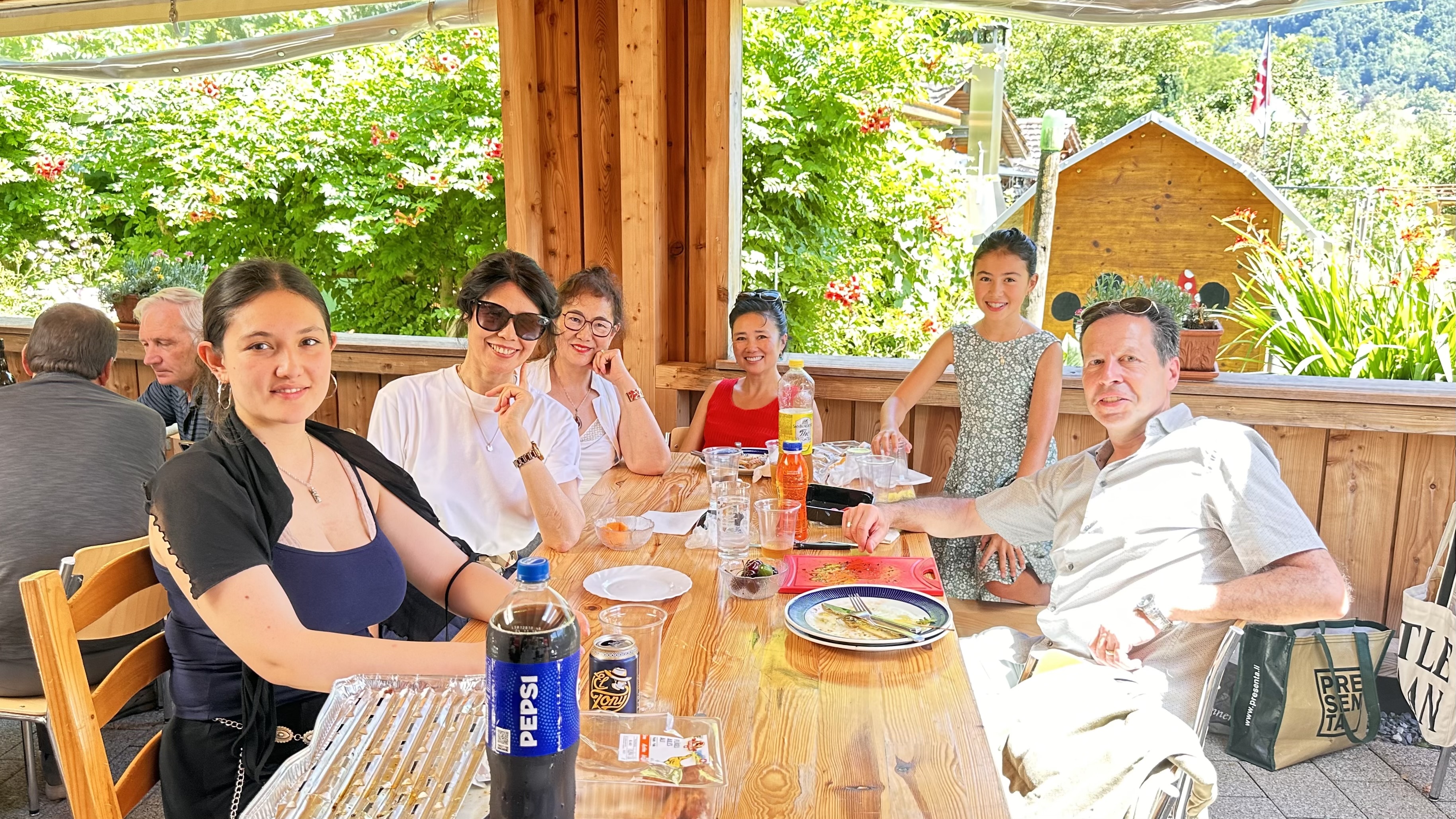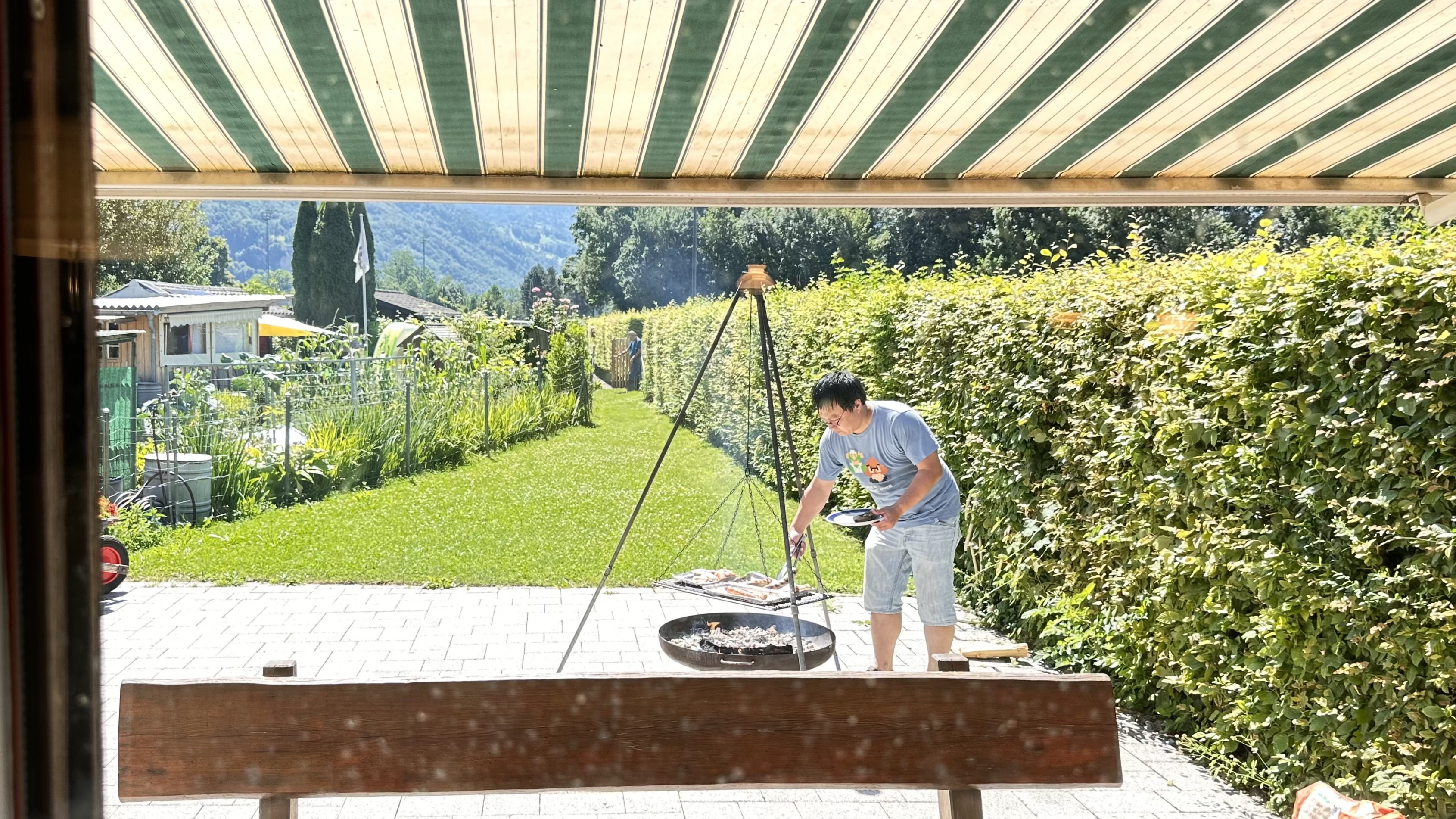 Getränke (Mineral, verschiedene Süssgetränke, Bier. Wein und Kaffee) und die Grillgelegenheiten sind vorhanden.